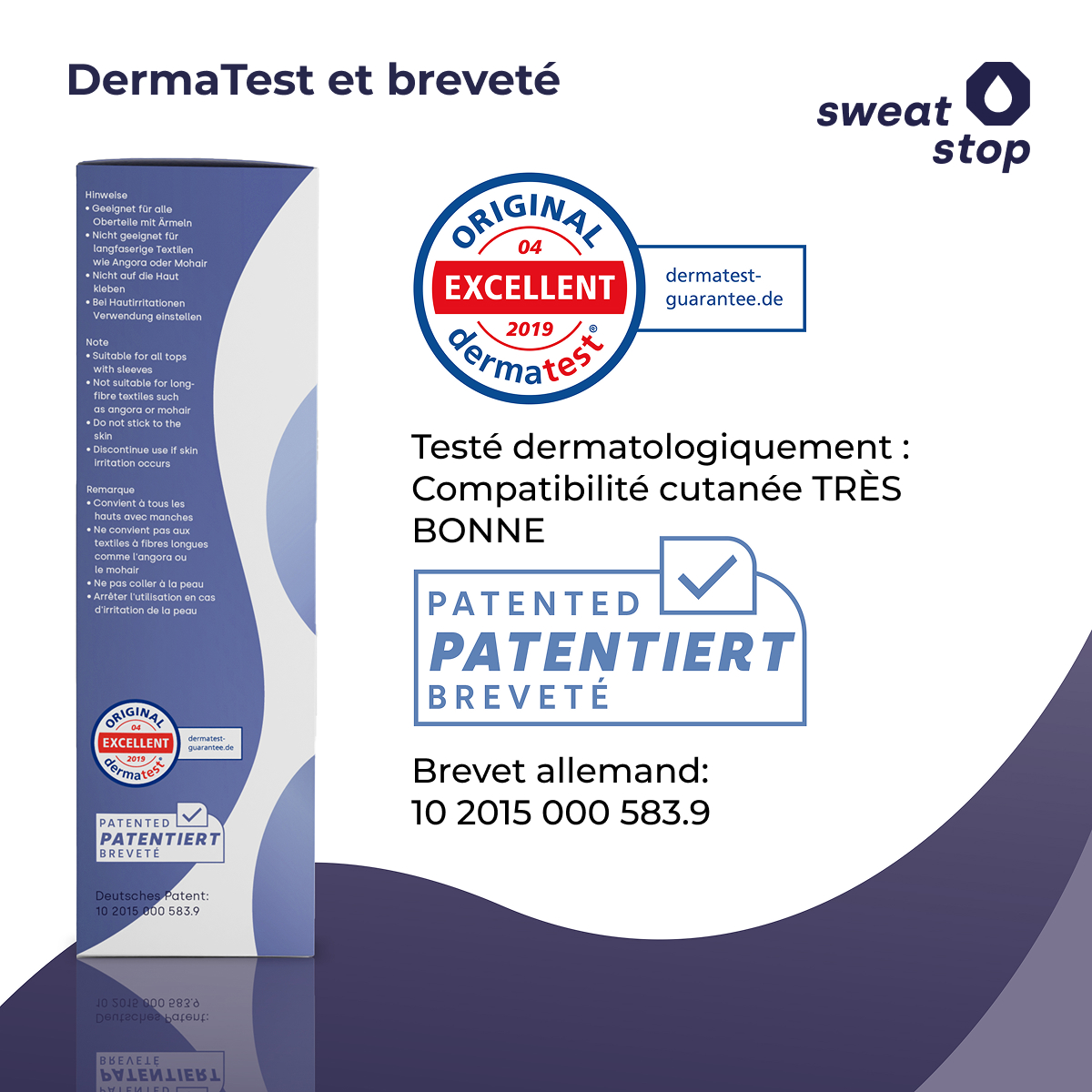 - Marque de confiance : SweatStop, expert contre la transpiration depuis 2006.